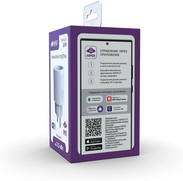Отзывы на Розетка HIPER IoT P01 умная Wi-Fi/AC 100-250В/10А/50/60 Гц/2500Вт/для установки только внутри помещений
