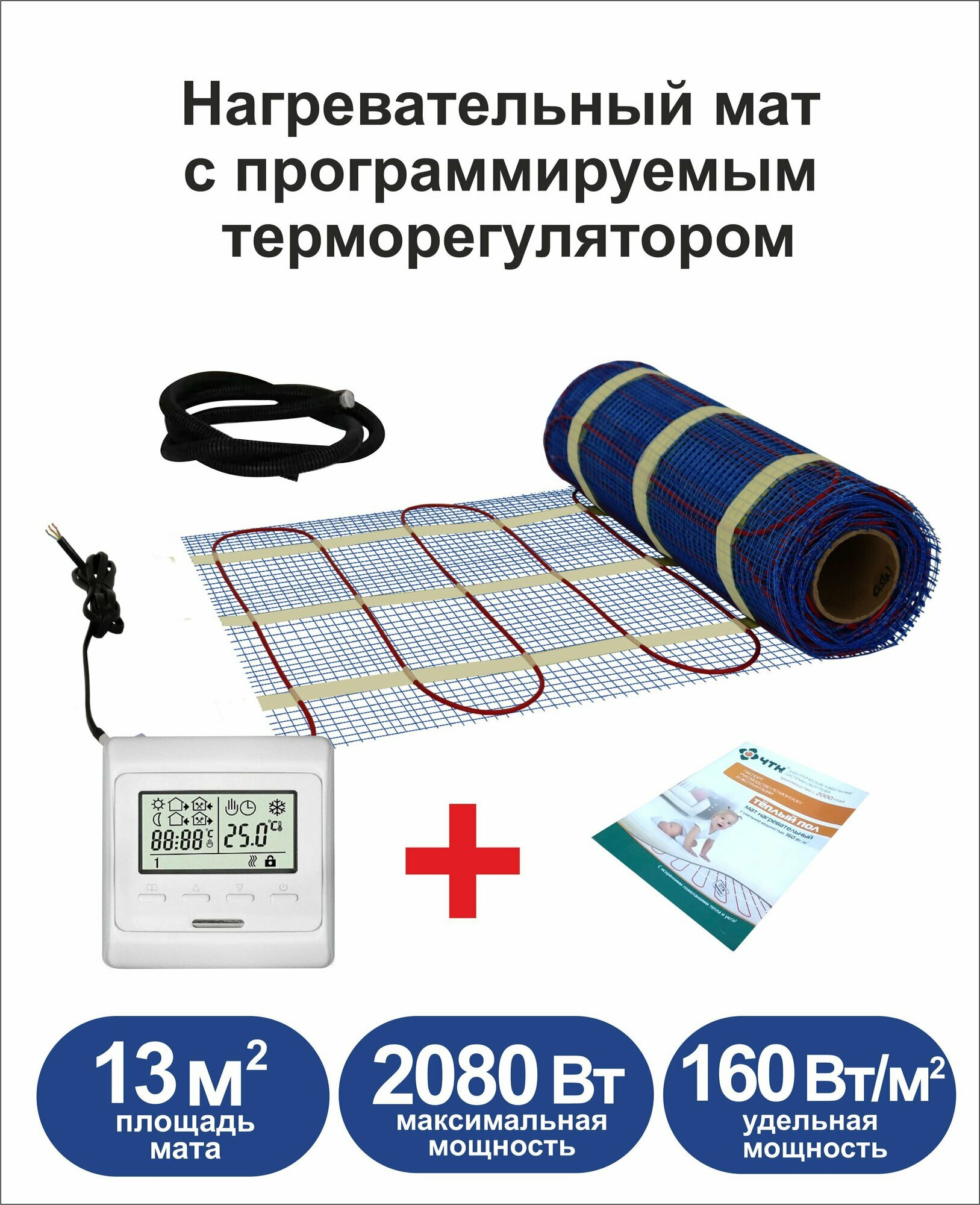 Теплый пол электрический под плитку (нагревательный мат) 13 м2 с программируемым терморегулятором информация: