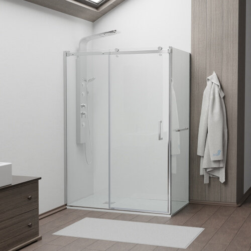 Душевое ограждение уголок SANTREK Iris-CR-900-C-Chrome 900*900*1850 Г-обр. стекло Прозр 6мм, профиль Хром