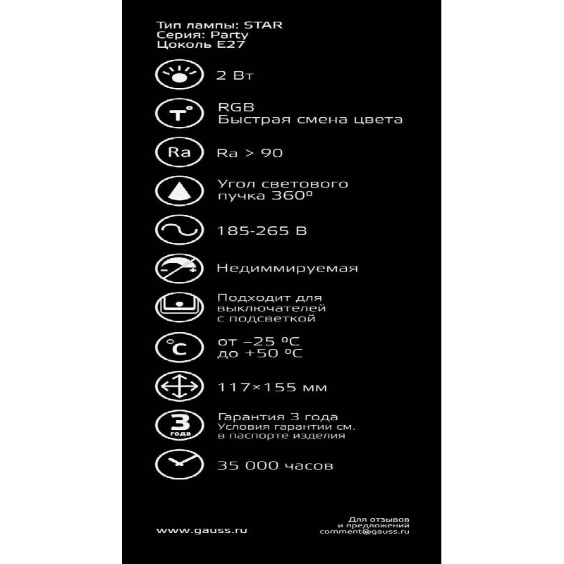 Лампа светодиодная gauss Vintage Star 160802008, E27, 2 Вт информация: