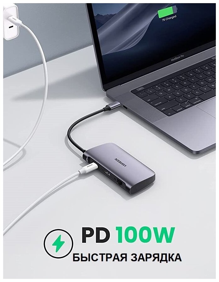 10 цен на USB концентратор 7 в 1 (хаб) Ugreen 2 x USB 3.0, Hdmi, Rj45, Sd/tf, PD (50852)