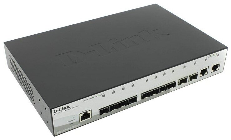Коммутатор D-Link (DGS-1210-12TS/ME/B1A) Управляемый L2, 10 ports 1000Base-X SFP, 2 ports 10/100/1000Base-T