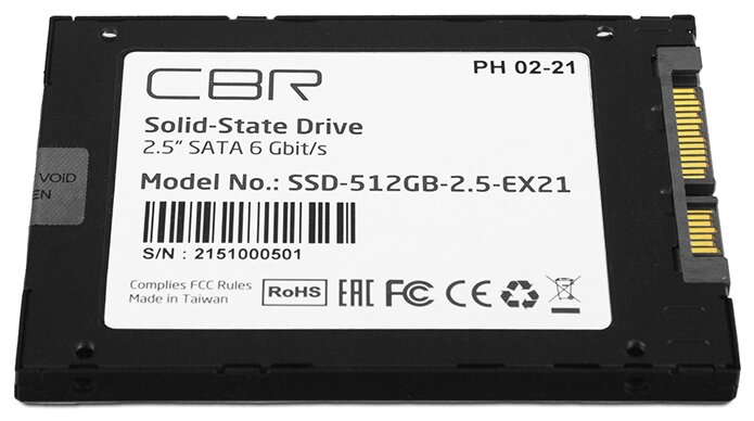Твердотельный накопитель CBR 512 ГБ SATA SSD-512GB-2.5-EX21