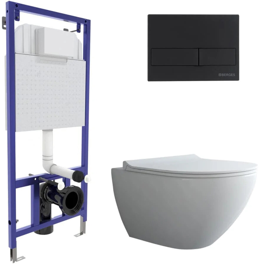 Комплект унитаза с инсталляцией Berges Wasserhaus Novum Rimless 043246 с сиденьем Микролифт и Черной клавишей смыва