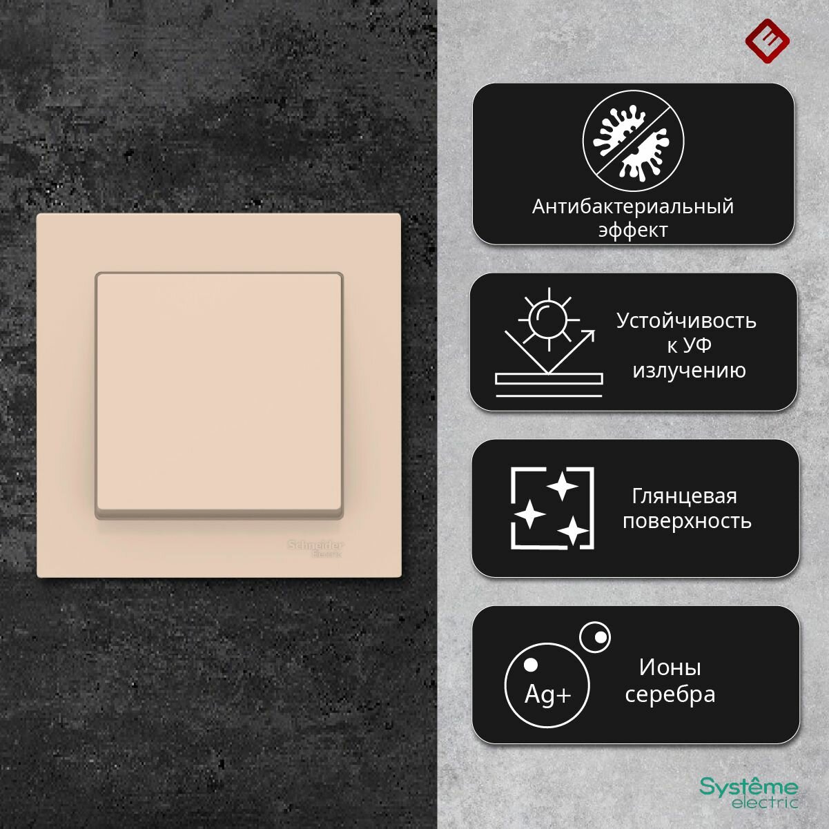 Отзывы на SE AtlasDesign Беж Выключатель 1-клавишный сх.1, 10АХ, в сборе