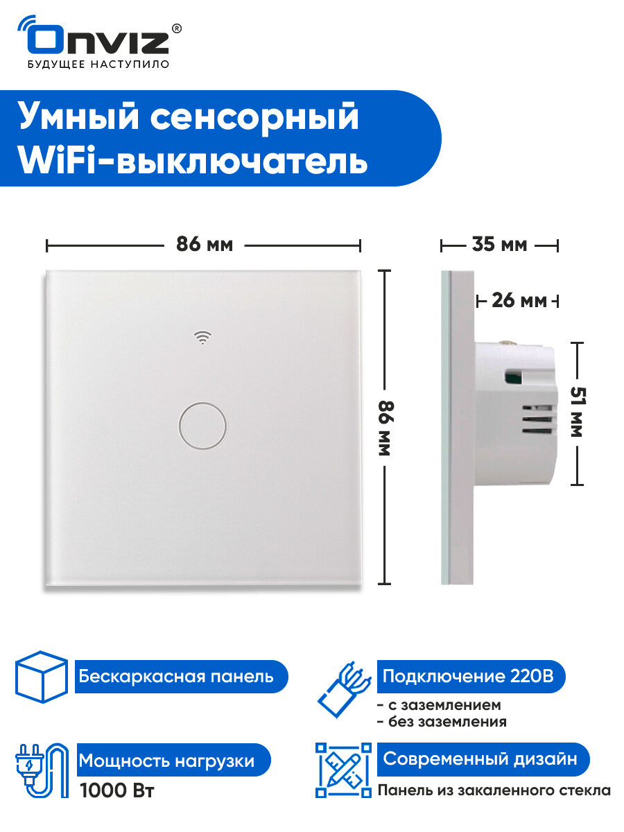 Умный сенсорный Wi-Fi выключатель Tuya (белый) - универсальный без нуля и с нулем - работает с Алисой информация: