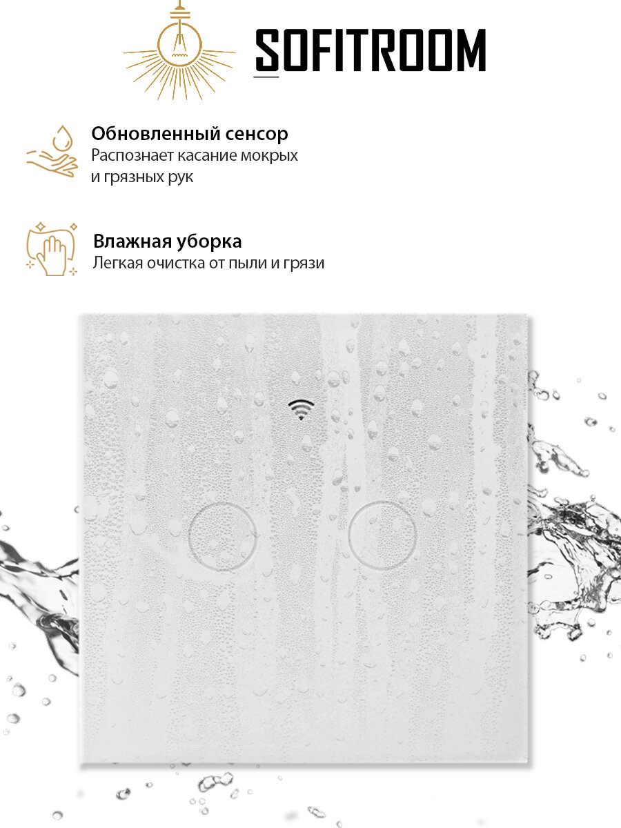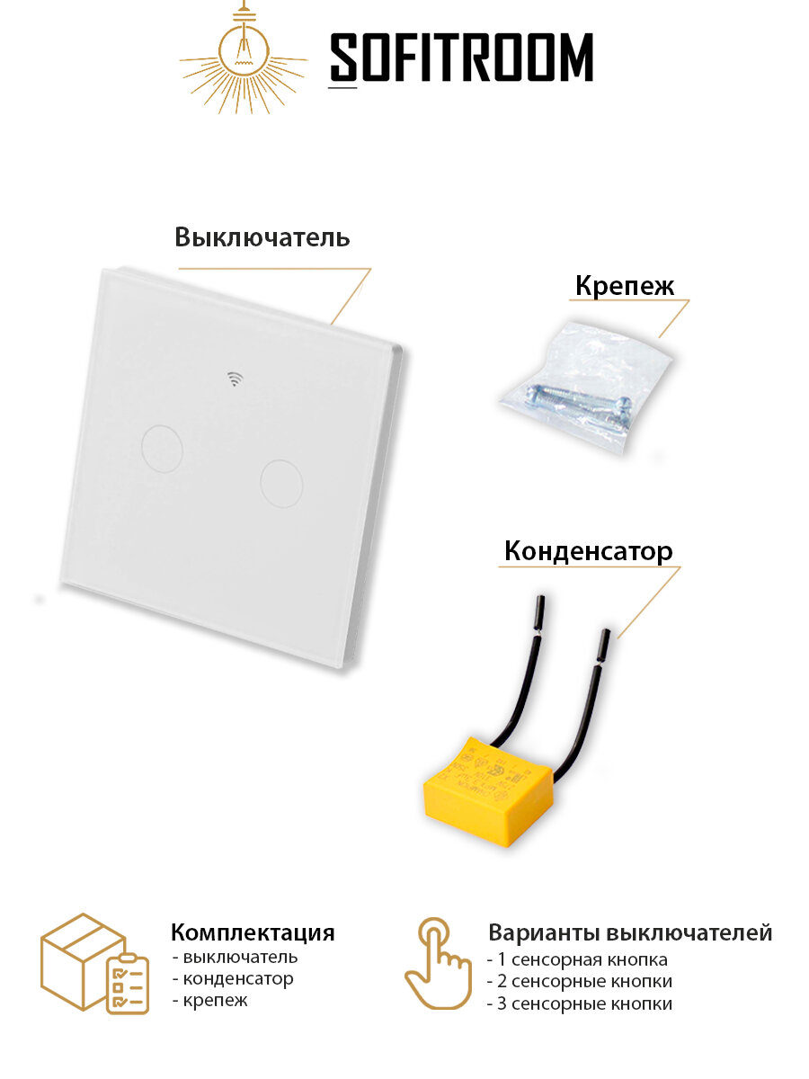 Умный сенсорный Wi-Fi выключатель Tuya (белый) двухканальный - универсальный без нуля и с нулем - работает с Яндекс Алисой информация:
