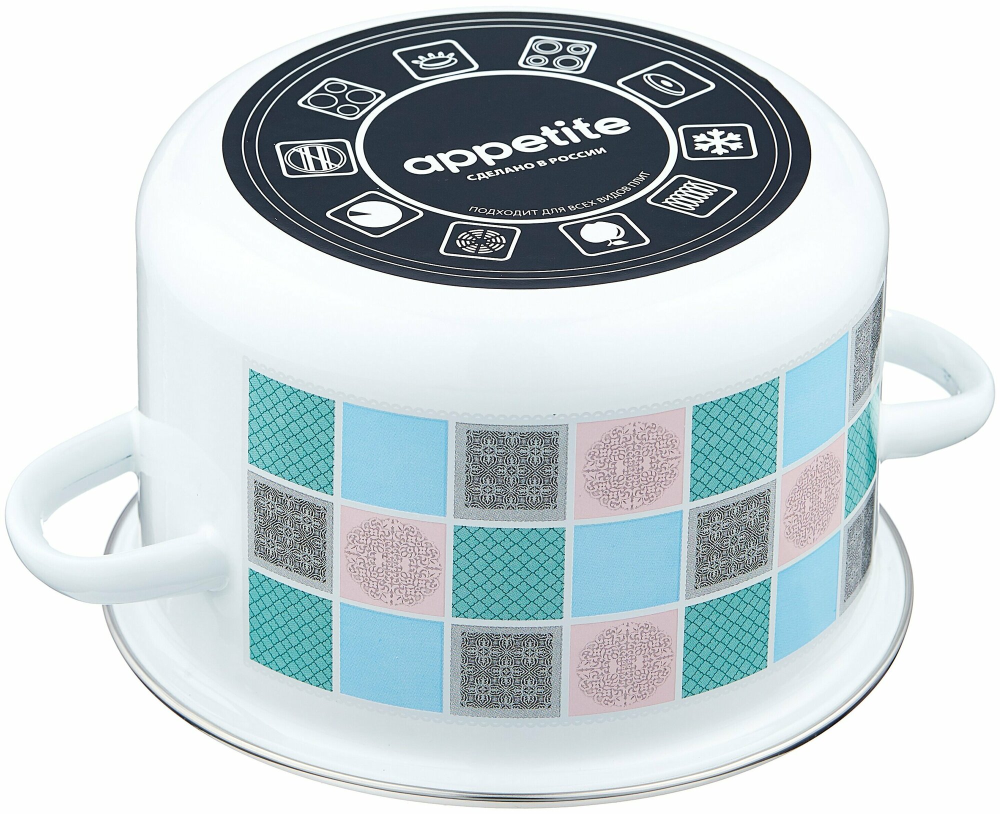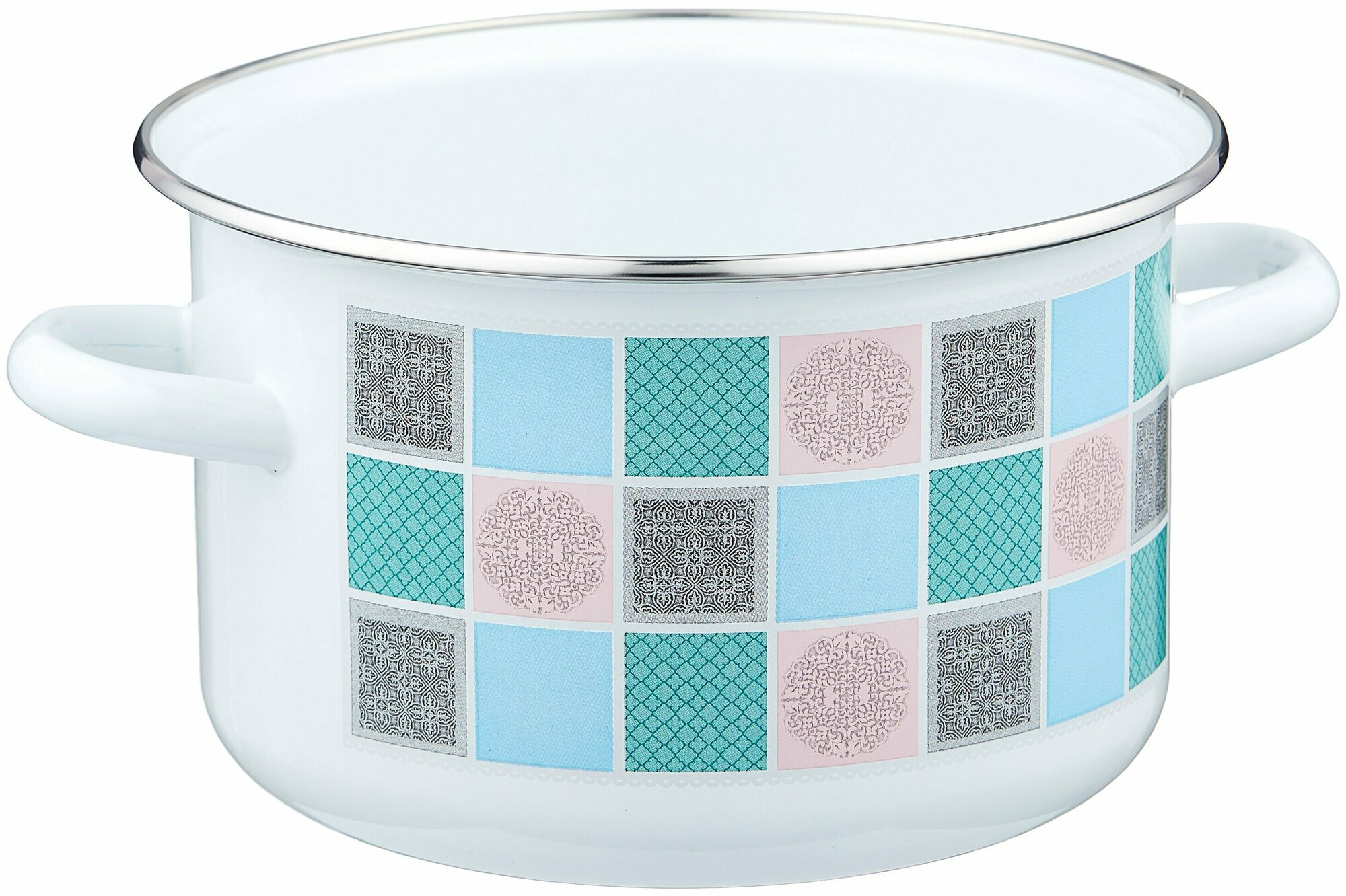 Кастрюля эмалированная 1,5 л с ободком белая с рисунком Фруктовая фантазия