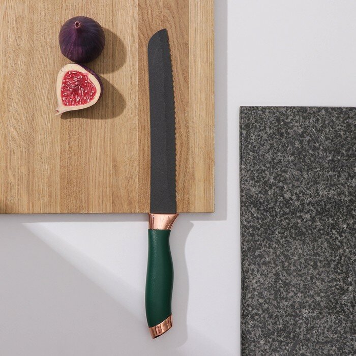 Нож кухонный Доляна "Эсмиральда", хлебный, лезвие 19,5 см, зеленый
