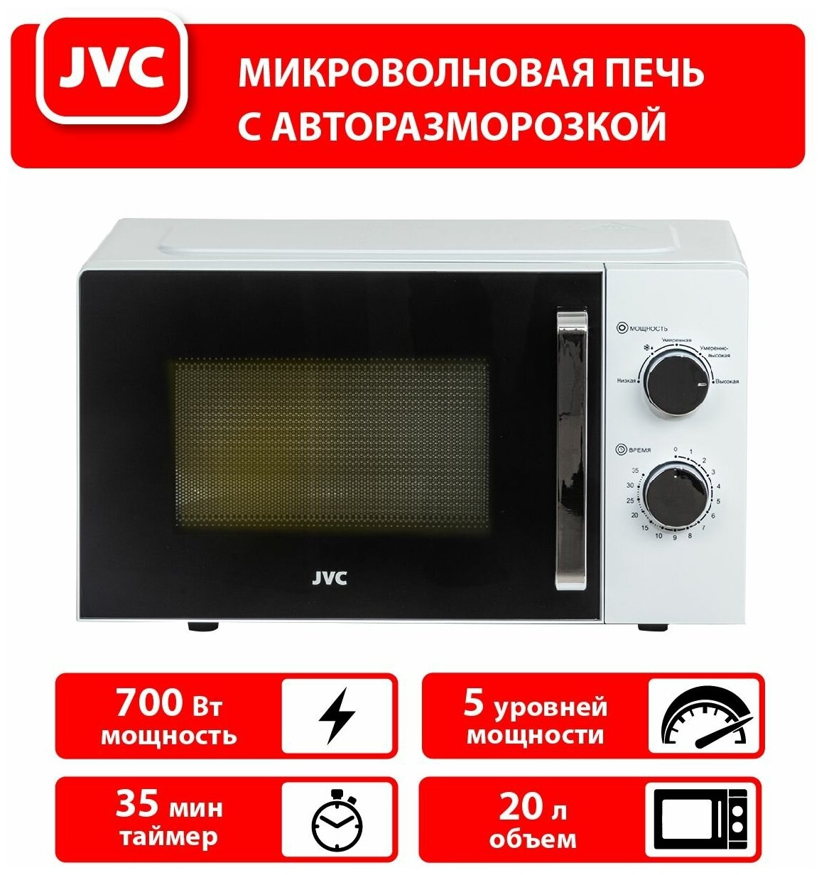 Печь микроволновая JVC JK-MW120M, 20 л, 700 Вт, механическое управление, белая