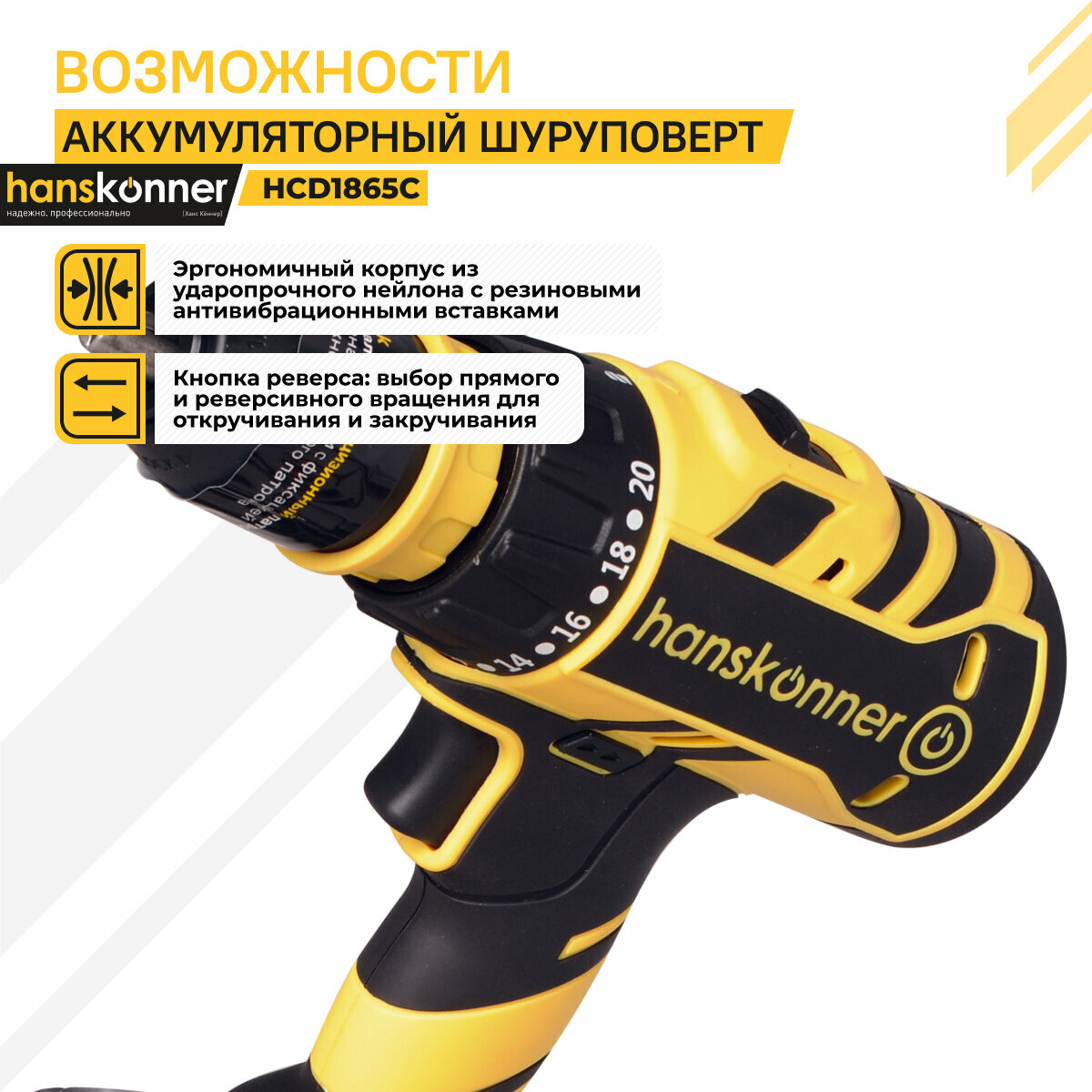 Аккумуляторный шуруповерт Hanskonner HCD1865C 1BatterySystem информация: