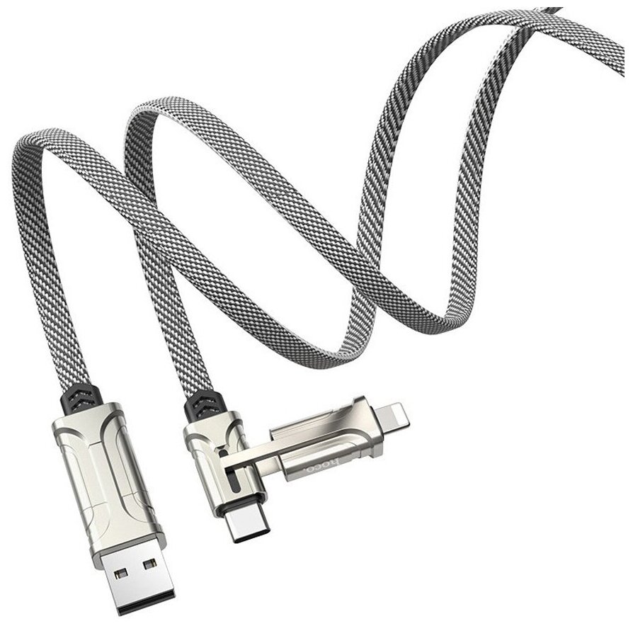 Отзывы на Кабель для зарядки и передачи данных Hoco S22 Two-for-Two Magic Cube, Type-C/USB to Lightning/Type-C, 60W, 1.2 м, Серый