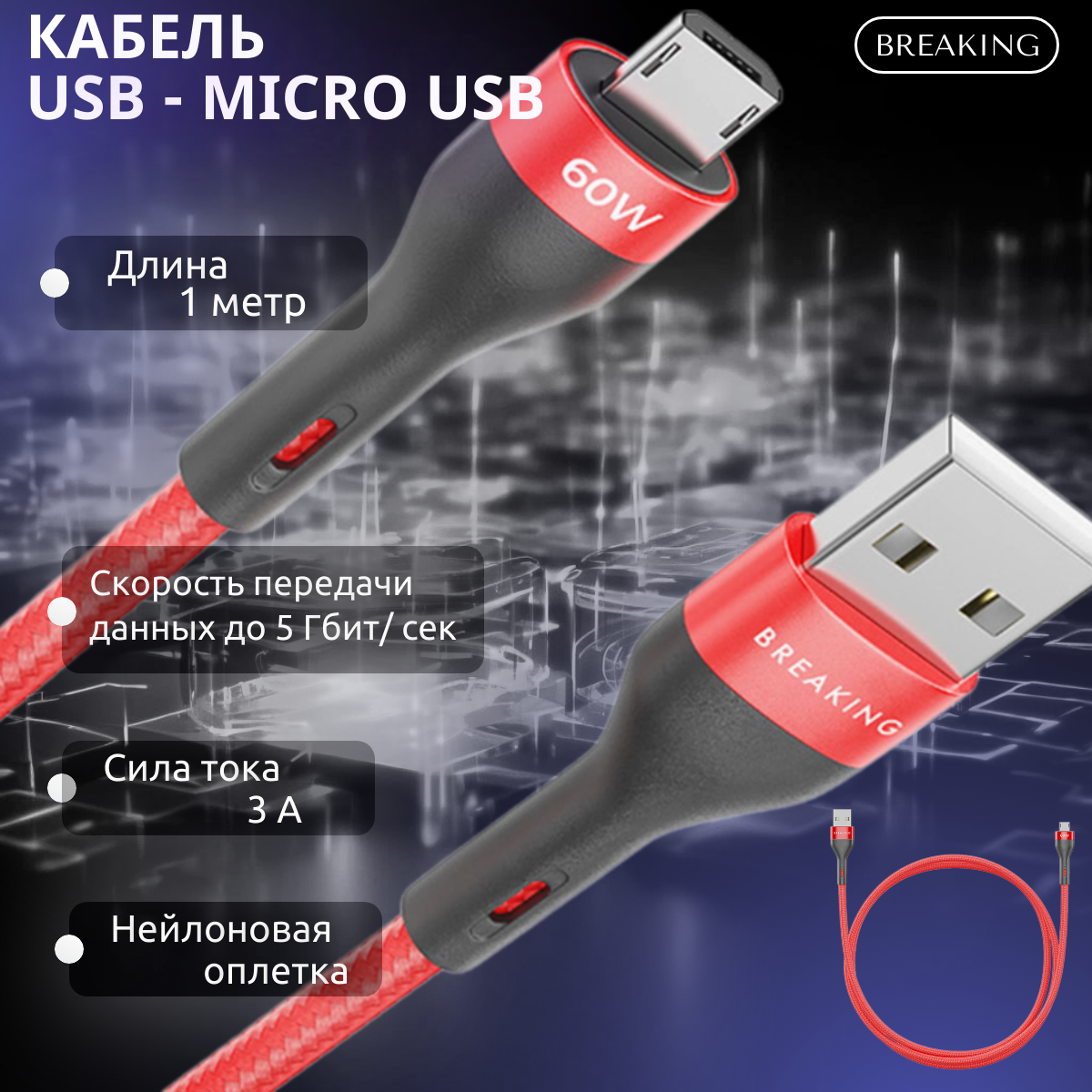 10 цен на Кабель Breaking Tissue USB - Micro USB, 3 A, 1,2 метр (Красный)