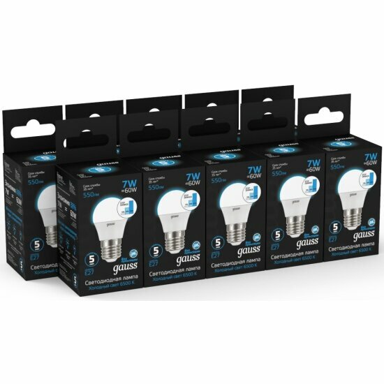 Отзывы на Светодиодная лампа Gauss Шар 7W 550lm 6500K Е27 шаг. диммирование LED 1/10/100