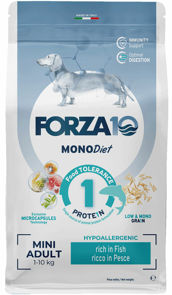 FORZA10 DOG MINI DIET монобелковый для взрослых собак маленьких пород при аллергии с рыбой (1,5 кг)