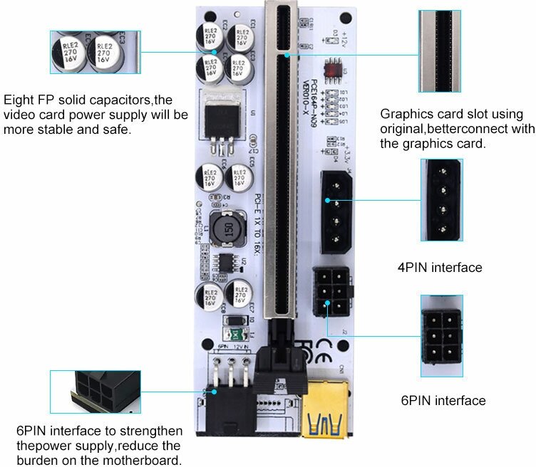 10 цен на Райзер PCI Express 1x to 16x Riser Card USB 3.0 Ver.010X