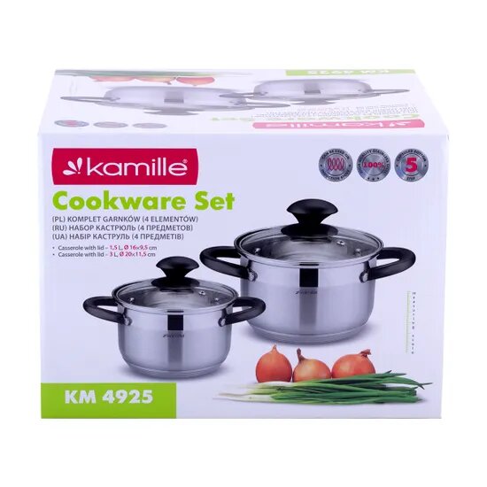 Набор посуды нерж, 4 пр, 1.5, 3 л, индукц, Kamille, 4925 информация: