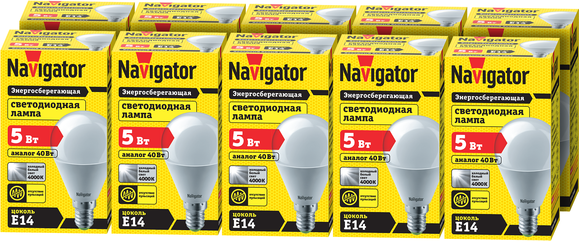 10 цен на Лампа Navigator 94 478 NLL-P-G45-5-230-4K-E14, 5 Вт, шар, Е14, дневной свет 4000К, упаковка 10 шт.