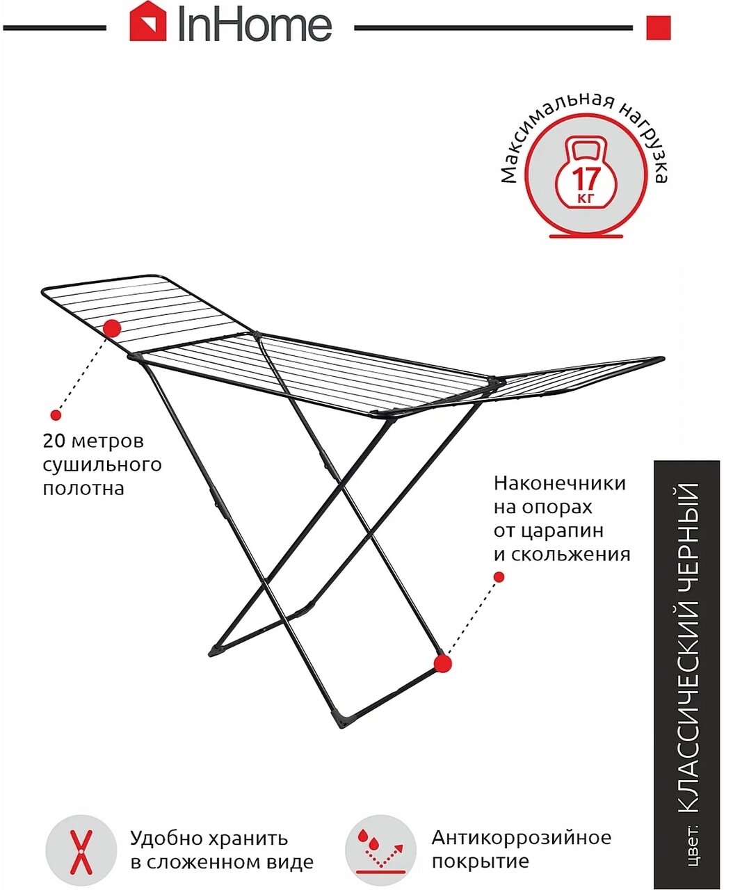 Сушилка для белья InHome напольная раскладная,197х54х111 см, 20 м черная INCD2/1 .