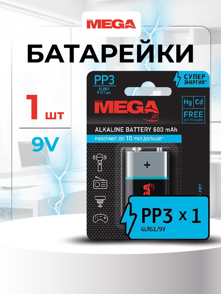 Батарейка ProMEGA 6LR61, Крона 9V, 1604A, алкалиновая, 1 шт информация: