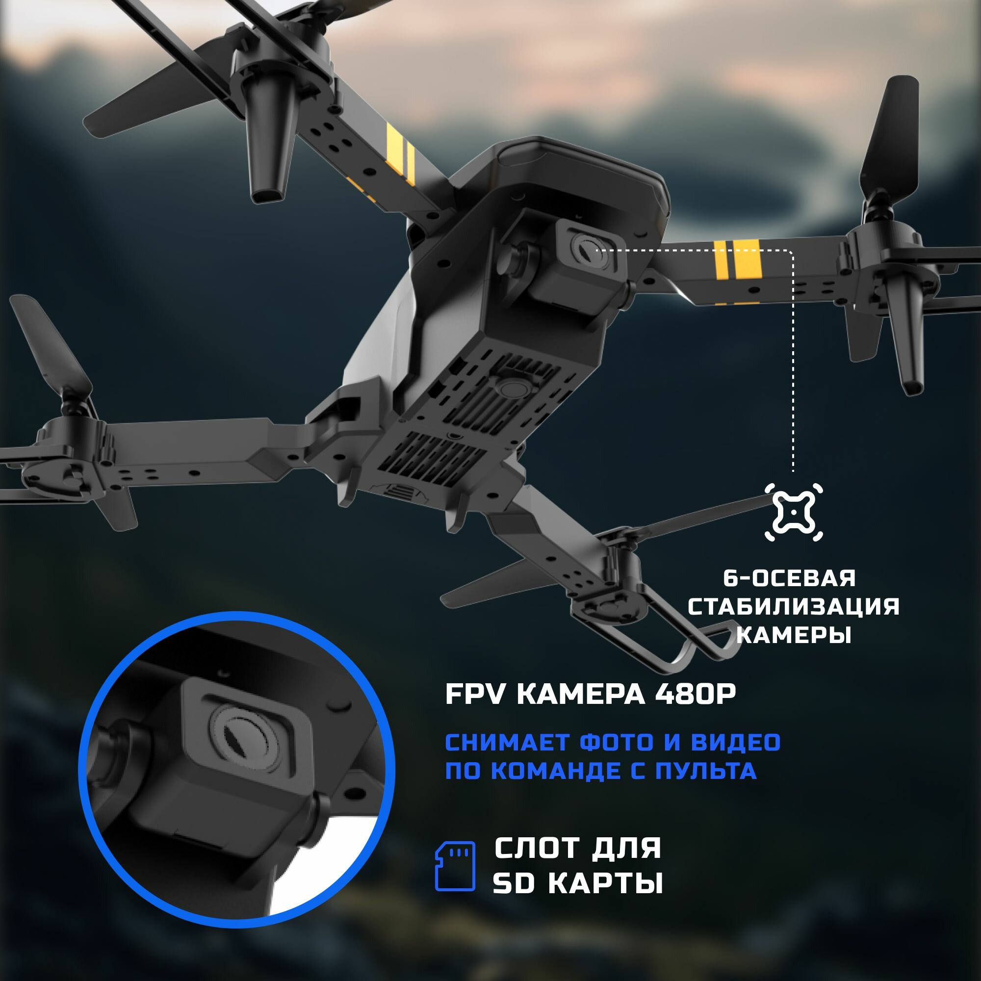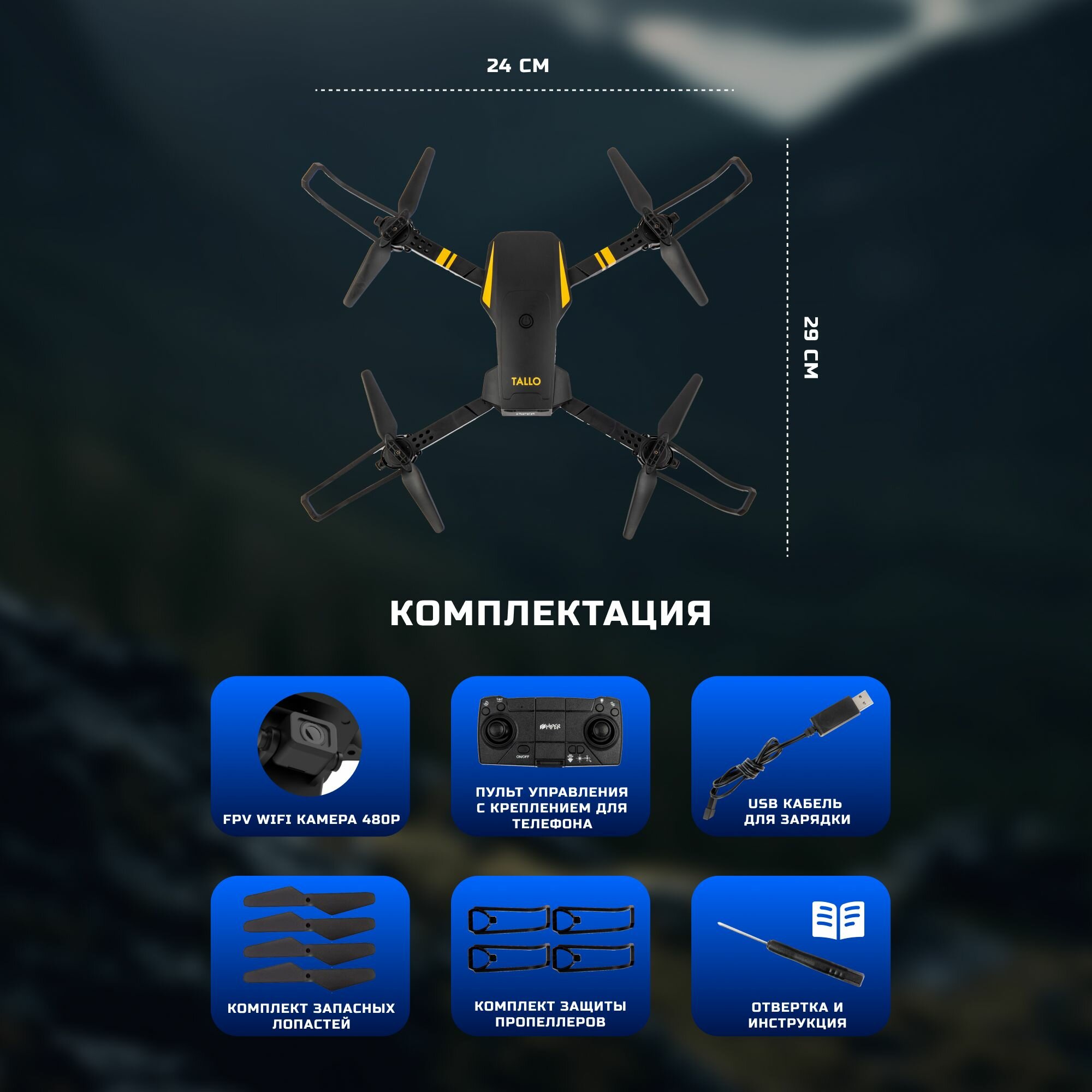 Квадрокоптер Hiper Tallo FPV HQC-0029 VGA WiFi ПДУ черный/оранжевый информация: