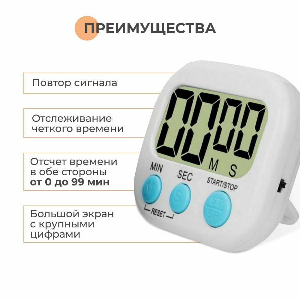 Таймер кухонный электронный Take Easy на магните / Секундомер цифровой магнитный для кухни / Для варки яиц, приготовления еды, выпечки информация: