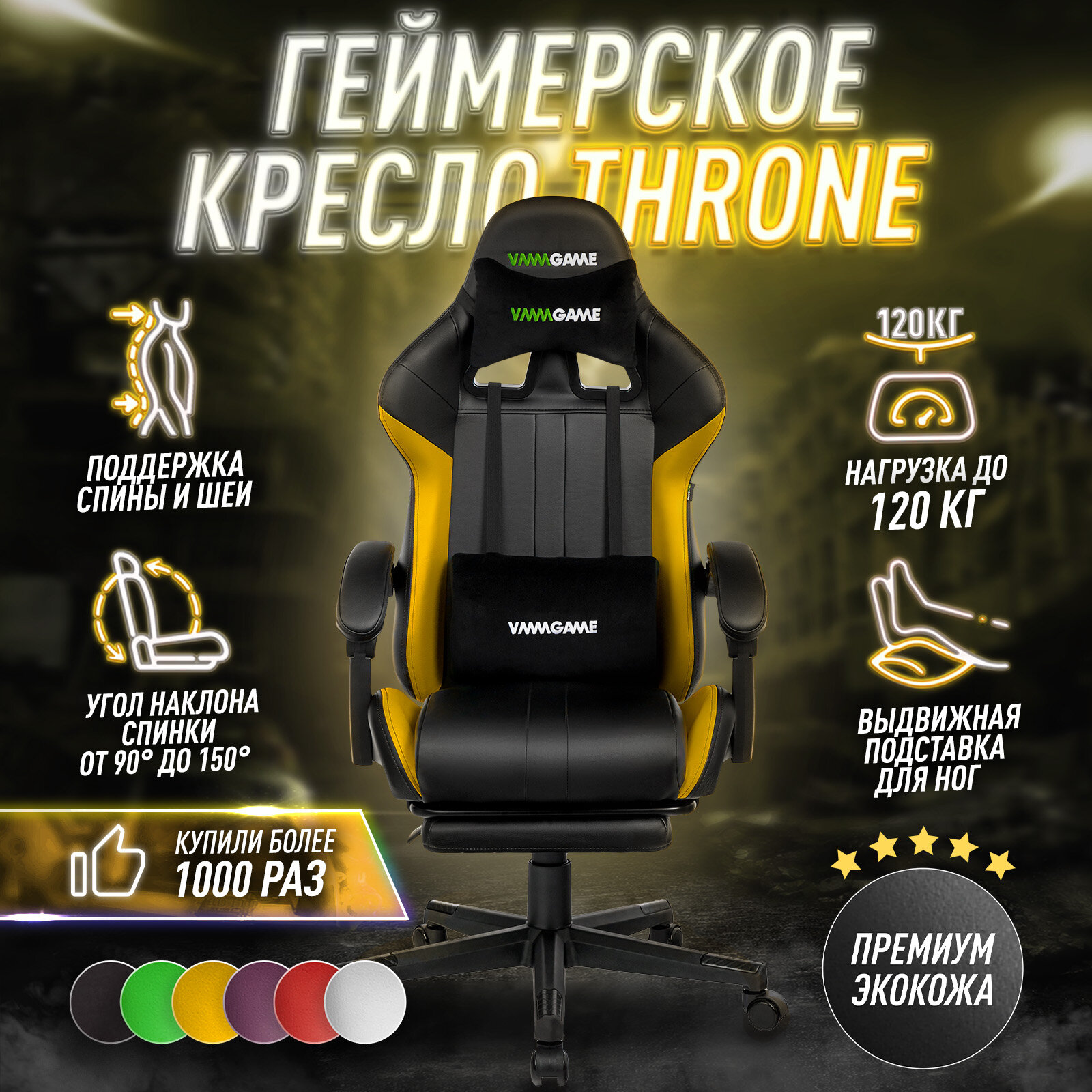 Игровое компьютерное кресло VMM GAME THRONE YELLOW информация: