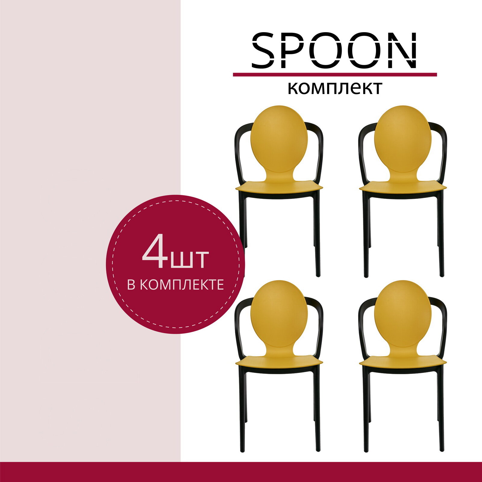 Стулья для кухни комплект 4 шт пластиковые со спинкой SPOON горчичный 32 550 ₽