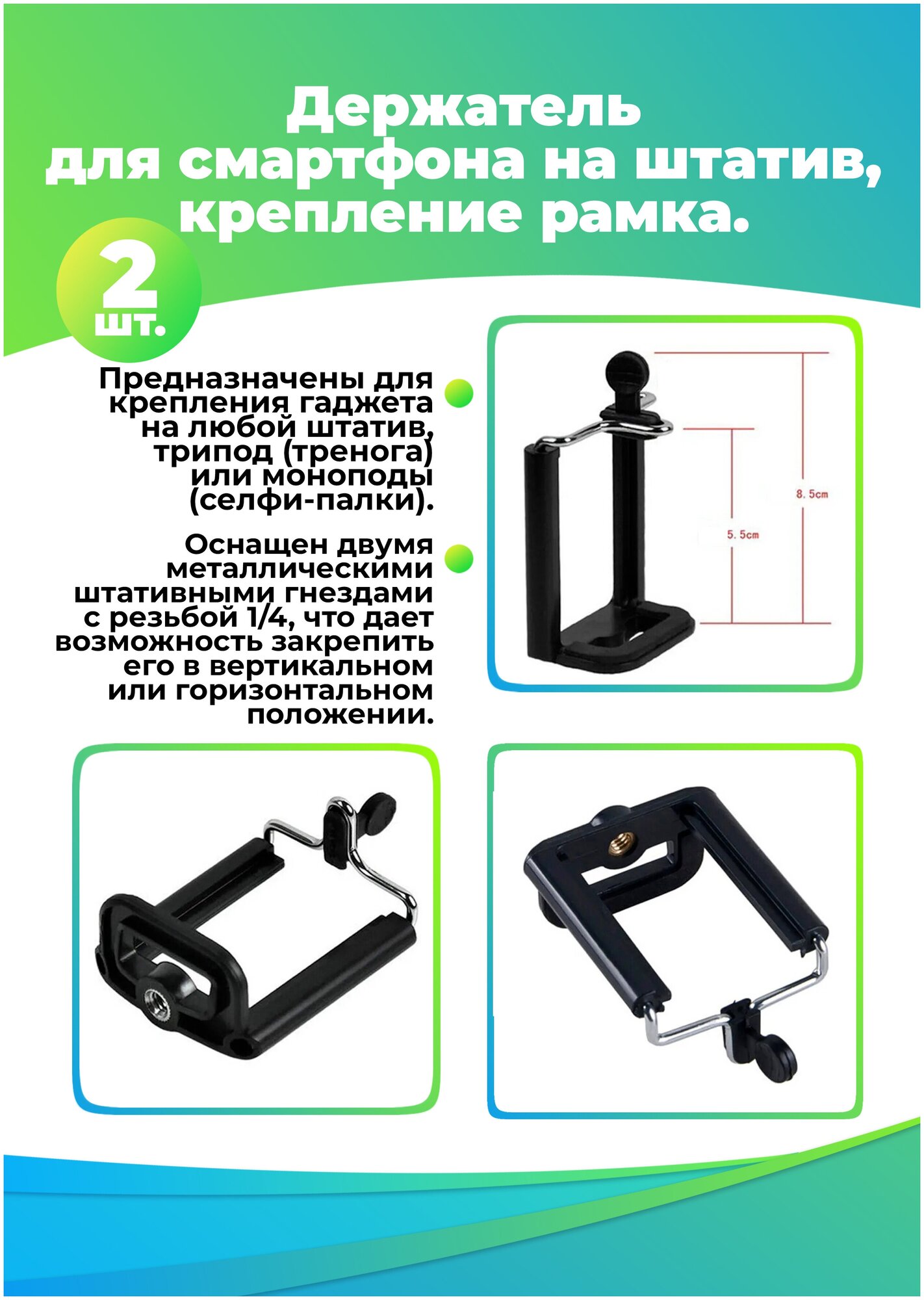 Рамка-держатель на штатив для смартфона, 2 шт. в комплекте информация: