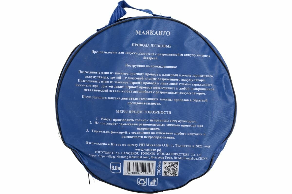 Провод прикуривания маякавто 700А, силикон, 6 метра, в чехле информация: