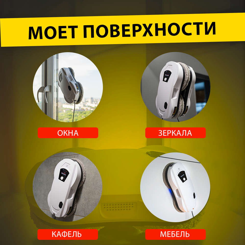 Робот-мойщик окон, с распылителем, страховочный шнур 4 м, пульт ДУ, 90 Вт, 10 сменных тряпок
