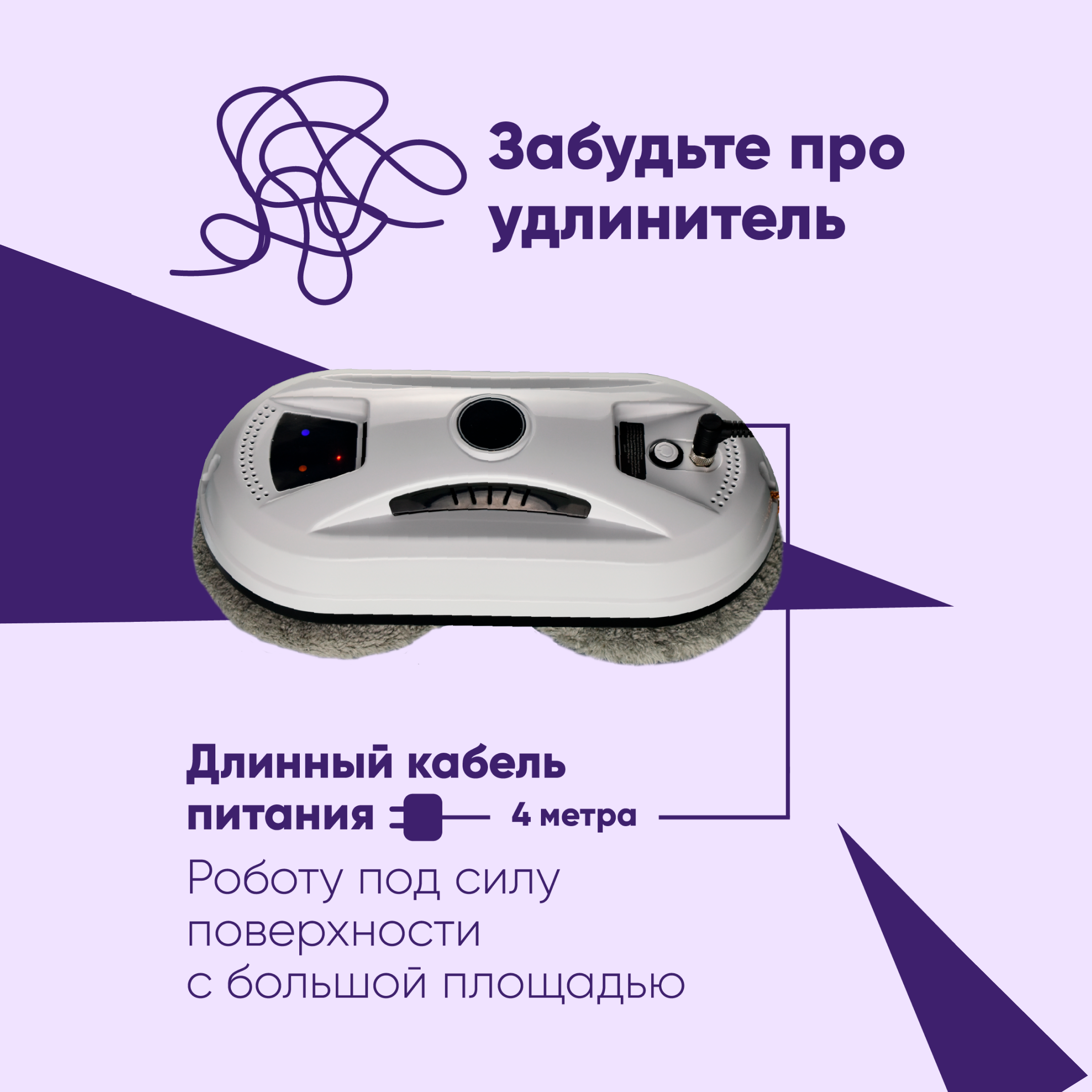 Робот-мойщик окон, с распылителем, страховочный шнур 4 м, пульт ДУ, 90 Вт, 10 сменных тряпок
