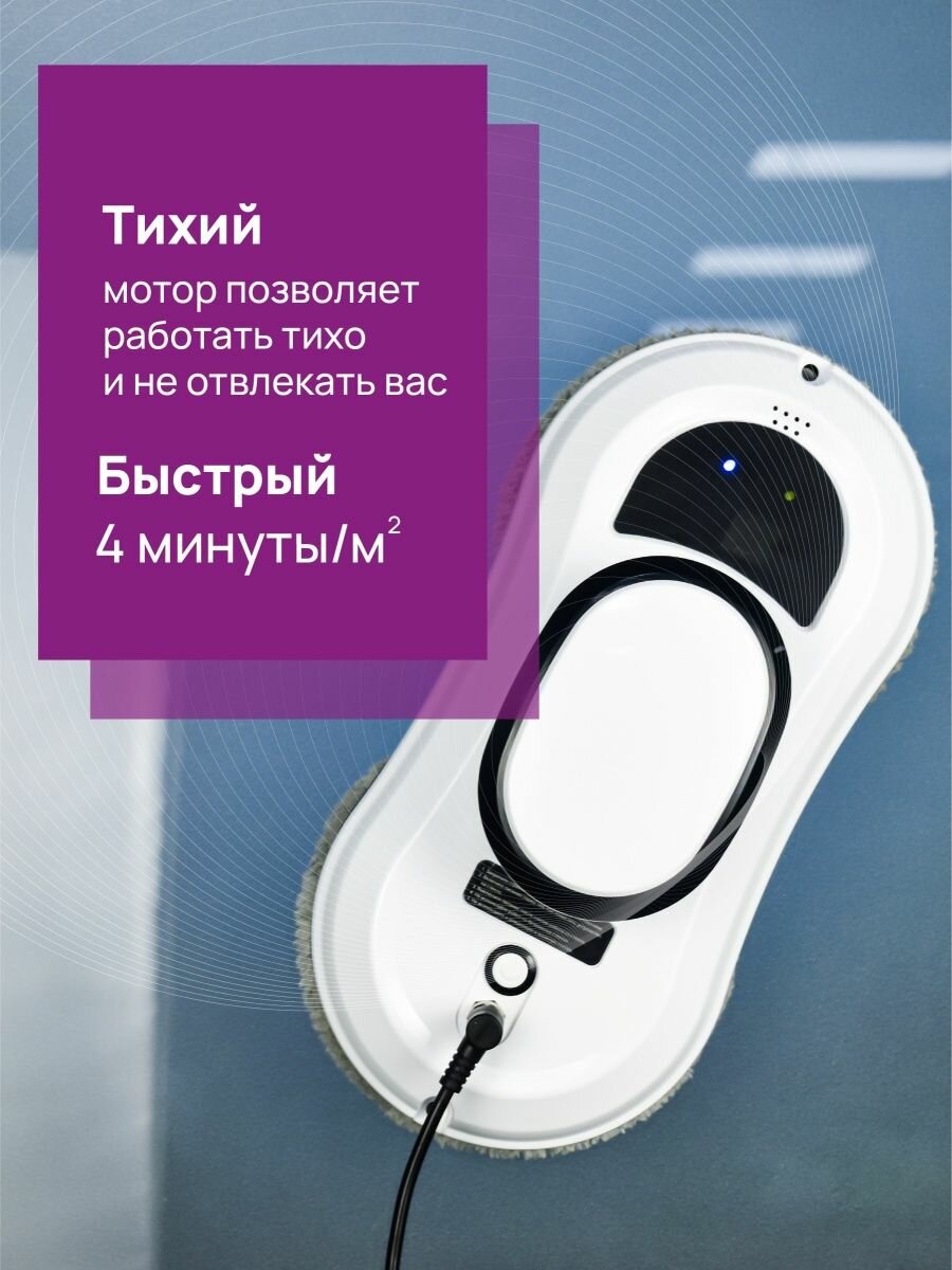 Робот-мойщик окон, с распылителем, страховочный шнур 4 м, пульт ДУ, 90 Вт, 10 сменных тряпок
