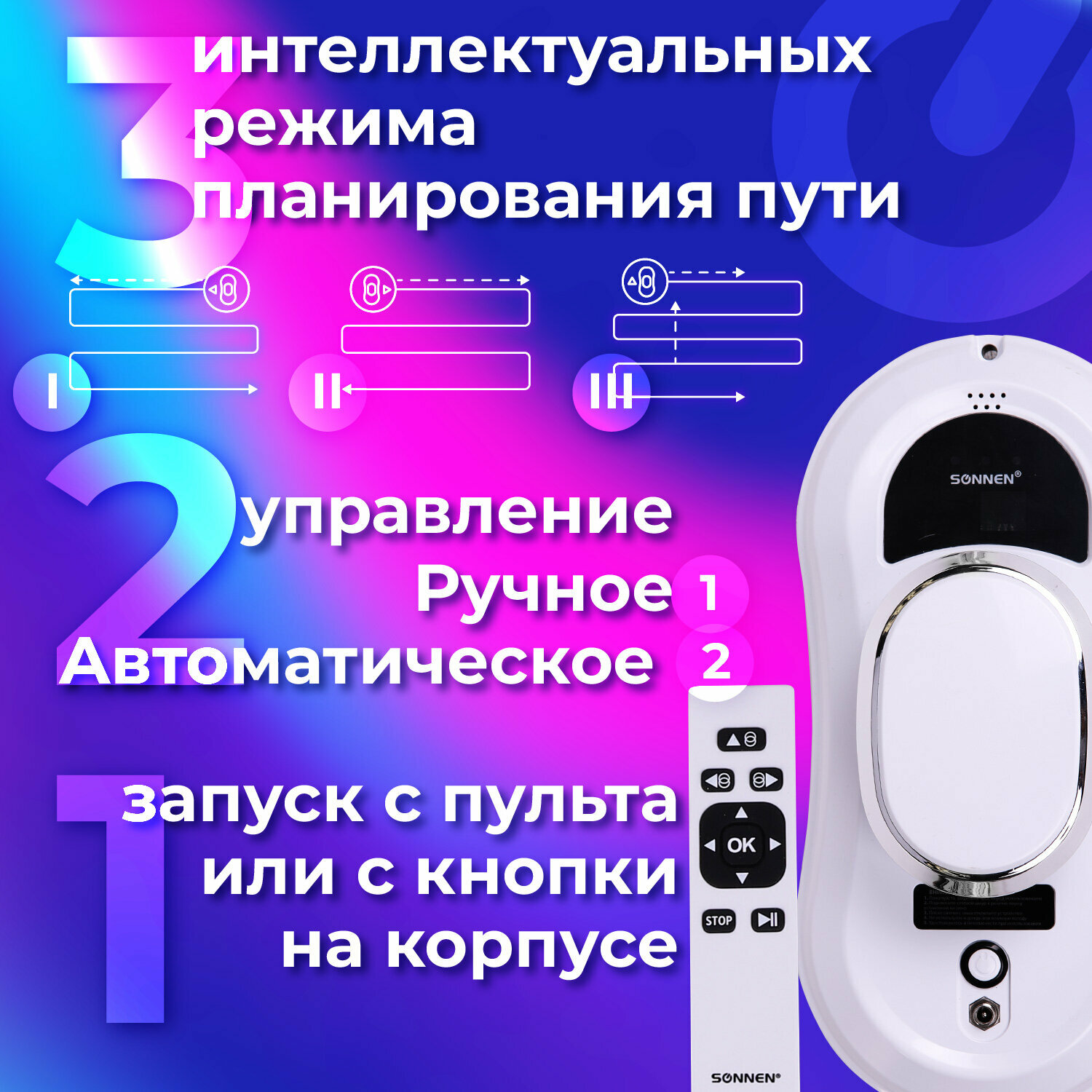 10 цен на Робот-мойщик окон SONNEN Tech RWC-121 UltraClear, датчик от падения, 26 салфеток, пульт ДУ, 456183