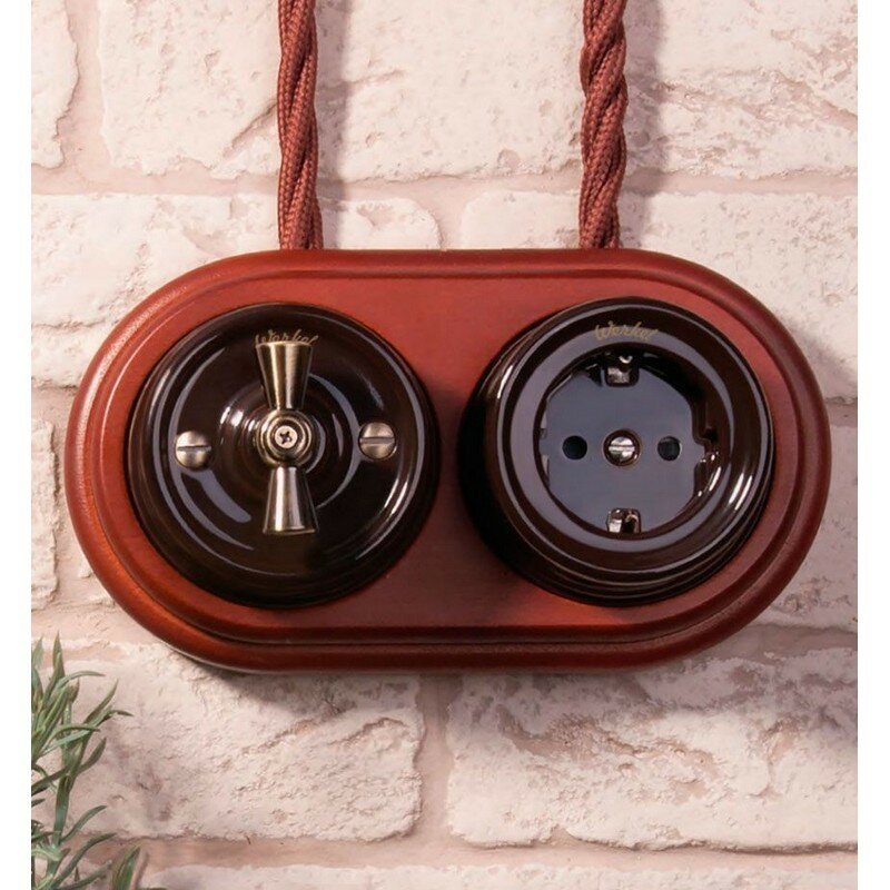 10 цен на Розетка с заземлением Werkel Ретро W5671014 коричневый IP20