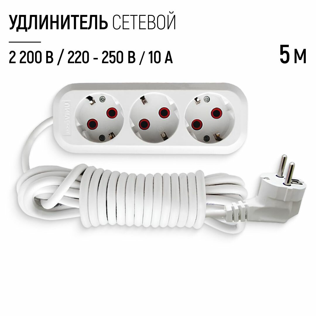 Удлинитель электрический бытовой с заземлением "UNIVERSAL" 10 А, 2200 Вт, 3 гнезда, 3 м UNIVersal 83223