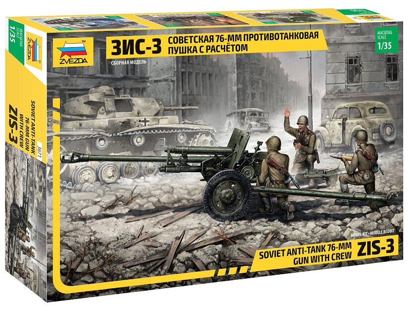 Модель для сборки ZVEZDA «Советская 76-мм противотанковая пушка ЗИС-3 с расчетом», масштаб 1:35 900 ₽