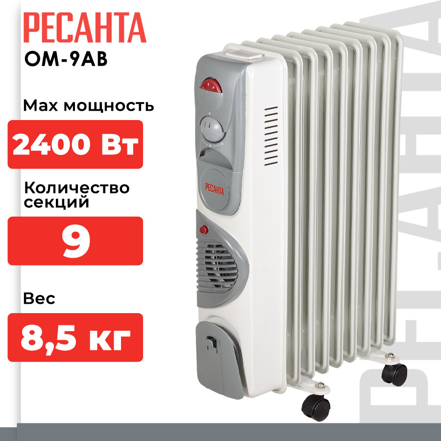 Масляный обогреватель Ресанта ОМ-9АВ (2.4 кВт)