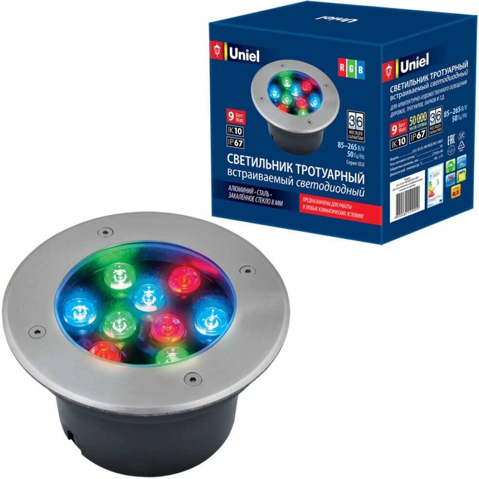 10 цен на ULU-B12A-9W-RGB IP67 GREY Светильник светодиодный уличный. Архитектурный встраиваемый. RGB свет. Корпус серый. TM Uniel.