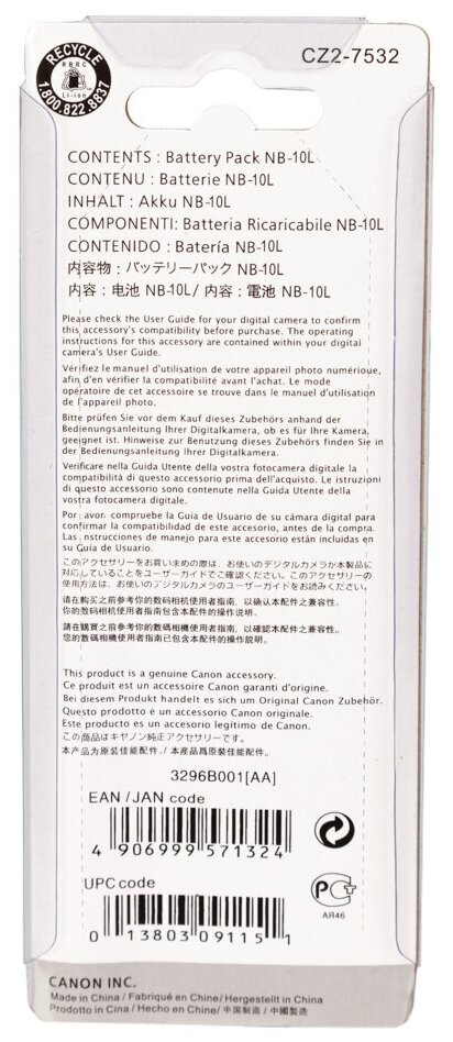 Аккумулятор Canon Battery Pack NB-10L информация:
