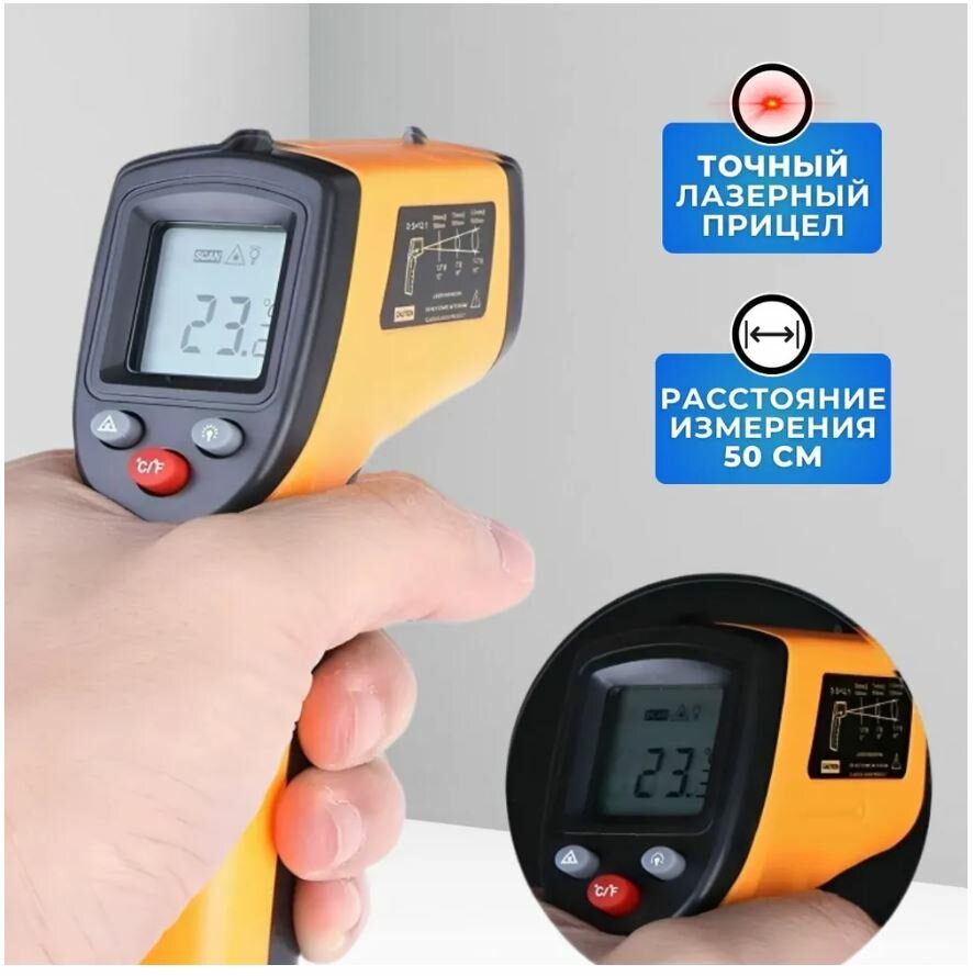Отзывы на Цифровой инфракрасный термометр, лазерный измеритель температуры, Бесконтактный пирометр с ЖК-дисплеем, 400С