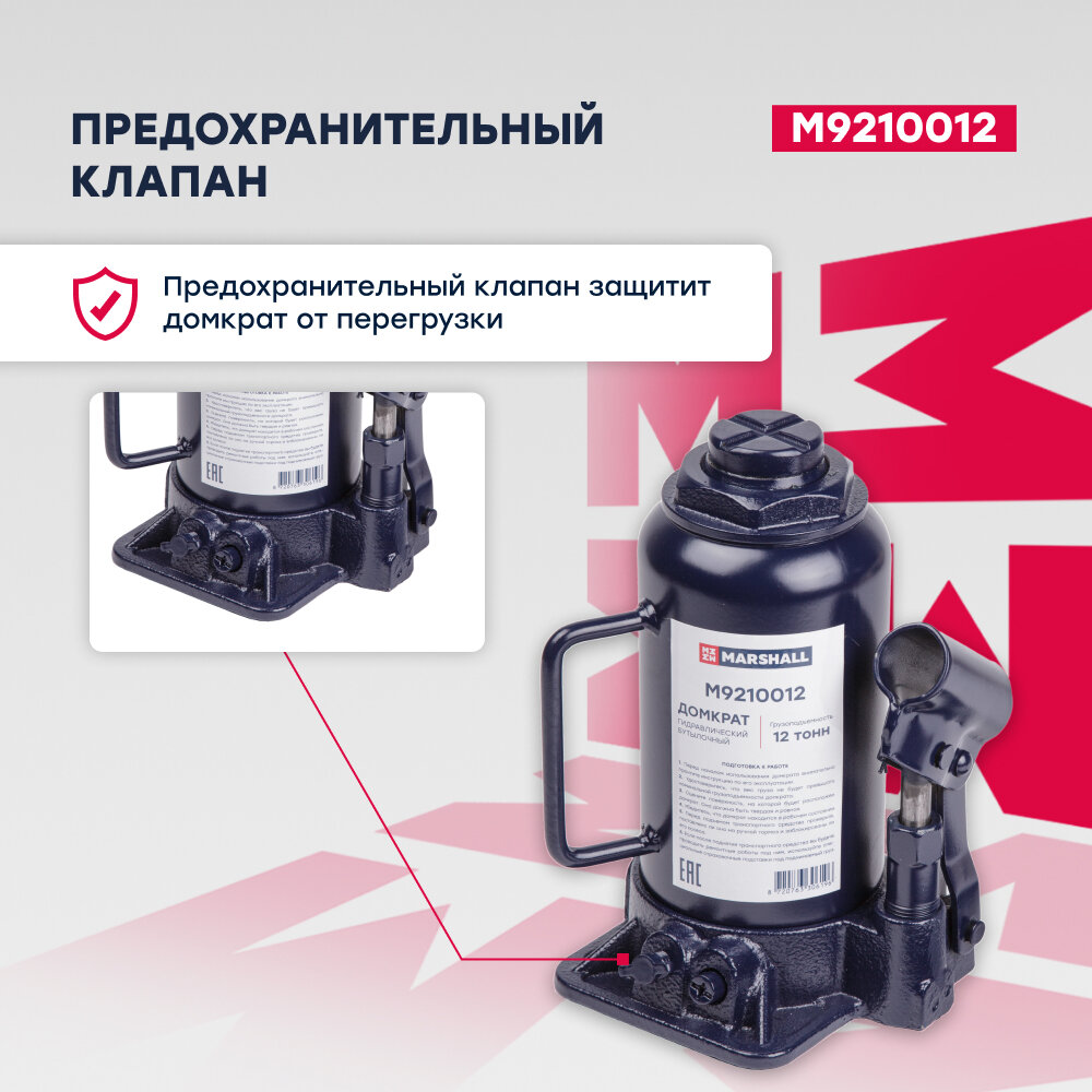 Домкрат автомобильный гидравлический бутылочный MARSHALL M9210012, 12т информация: