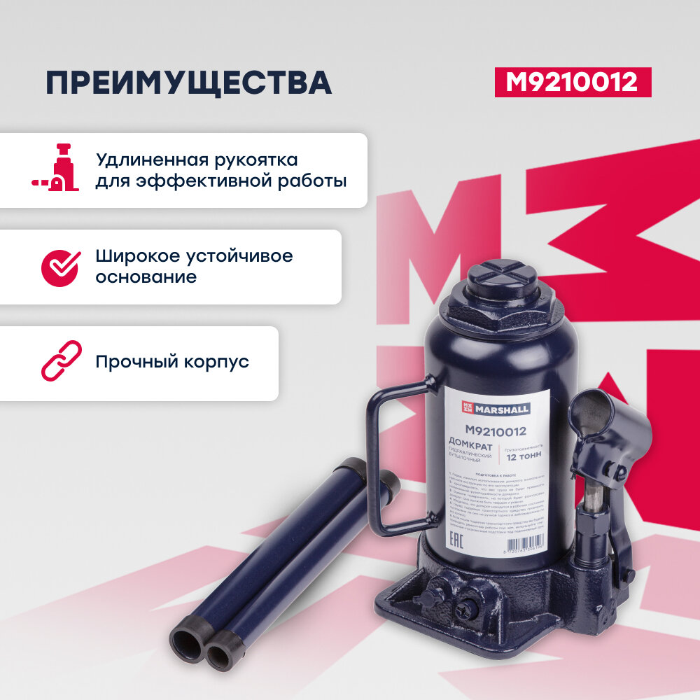 10 цен на Домкрат автомобильный гидравлический бутылочный MARSHALL M9210012, 12т