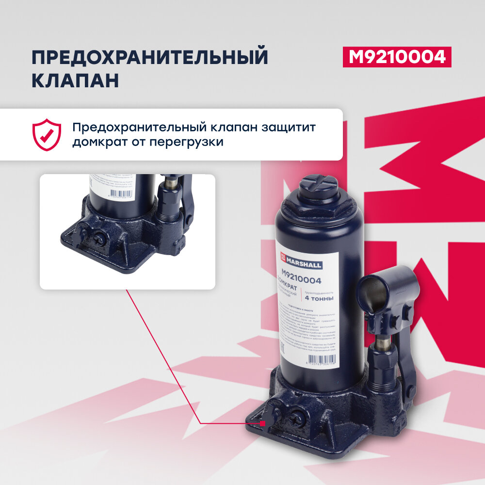 Домкрат автомобильный гидравлический бутылочный MARSHALL M9210004, 4т информация:
