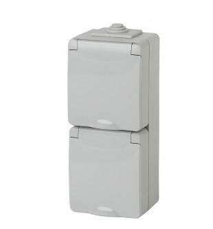 Розетка Эра 2-м ОП Эксперт 11-2607-03 16А IP65 верт. 250В 2х2P+E, Серый, Б0036002
