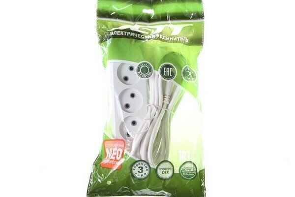 Сетевой электрический удлинитель 5 метров на 4 розетки без заземления JETT ( джетт) РС-4 ( ПВС ) , 2200Вт 410 ₽
