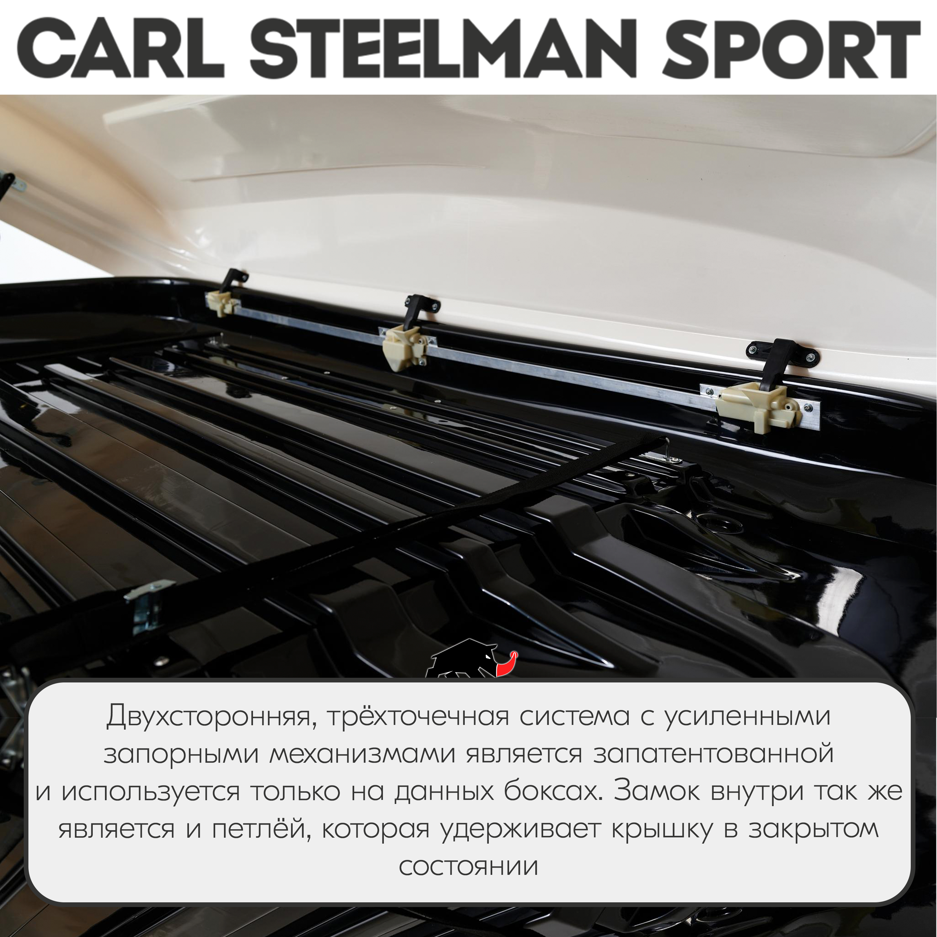 Багажный бокс на крышу Carl Steelman SPORT 1800*790*330 белый "карбон" с двухсторонним открытием + еврокрепление "краб"(об.330л) информация: