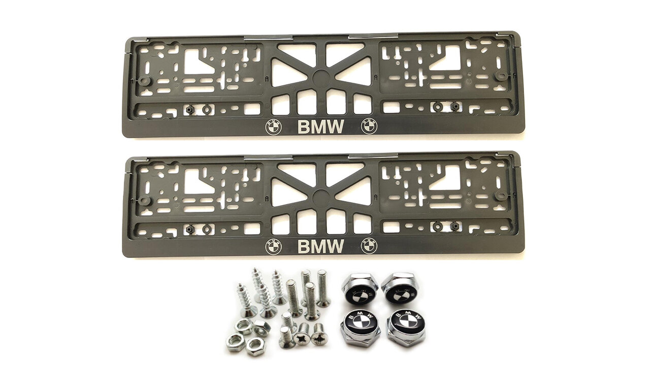 10 цен на Комплект: пластиковая рамка для гос. номера BMW 2шт.плюс болты для номерных знаков BMW черно-белые 4шт.