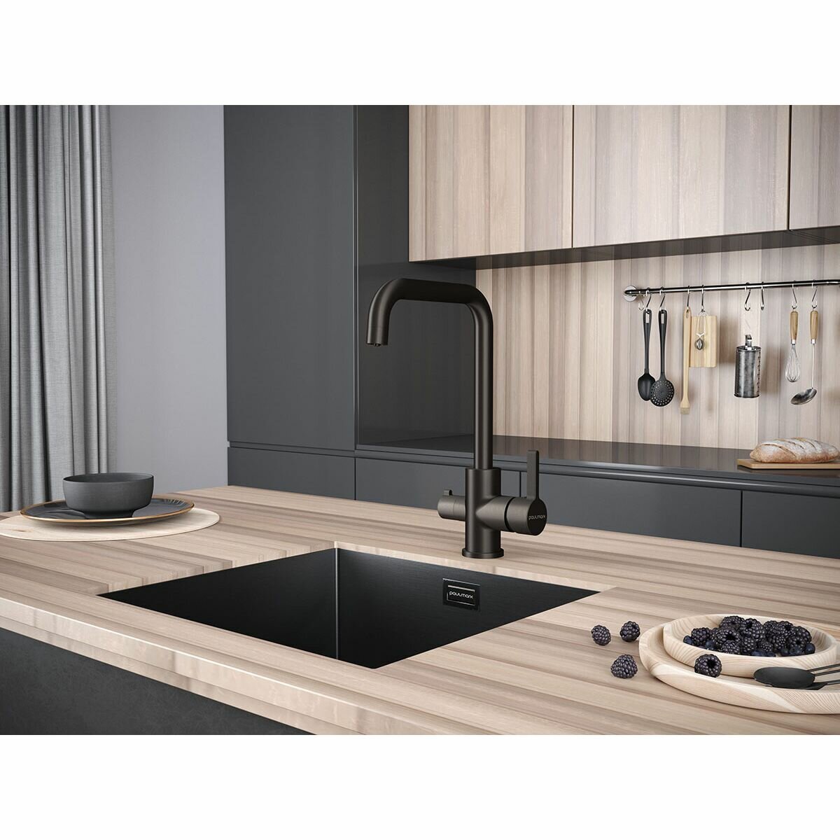 Отзывы на Смеситель для кухни Paulmark Logas с подключением фильтра вороненая сталь Lo213021-GM