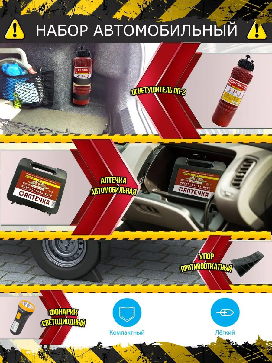 Аварийный набор автомобилиста ультра плюс с огнетушителем ГОСТ 2021 для техосмотра информация: